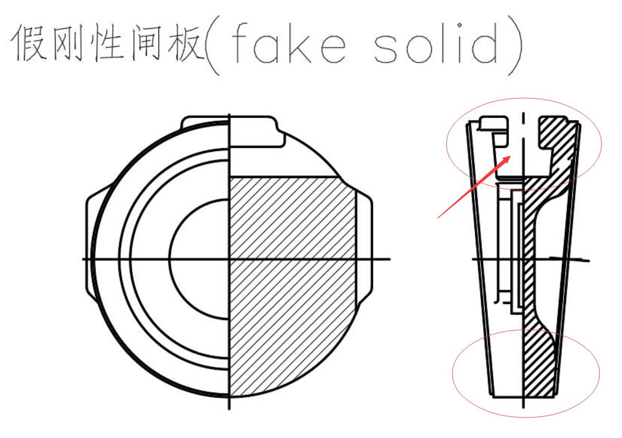 Certains fabricants avec une mauvaise expérience qui suivent juste comme coin standard composent autour du coin sauf le couple (GG gt;=6" ce couple arrière de la face du joint), en d'autres termes, ce faux solide&( comme le montre le dwg ci-dessous), et ce genre de conception que la vanne fuira toujours.